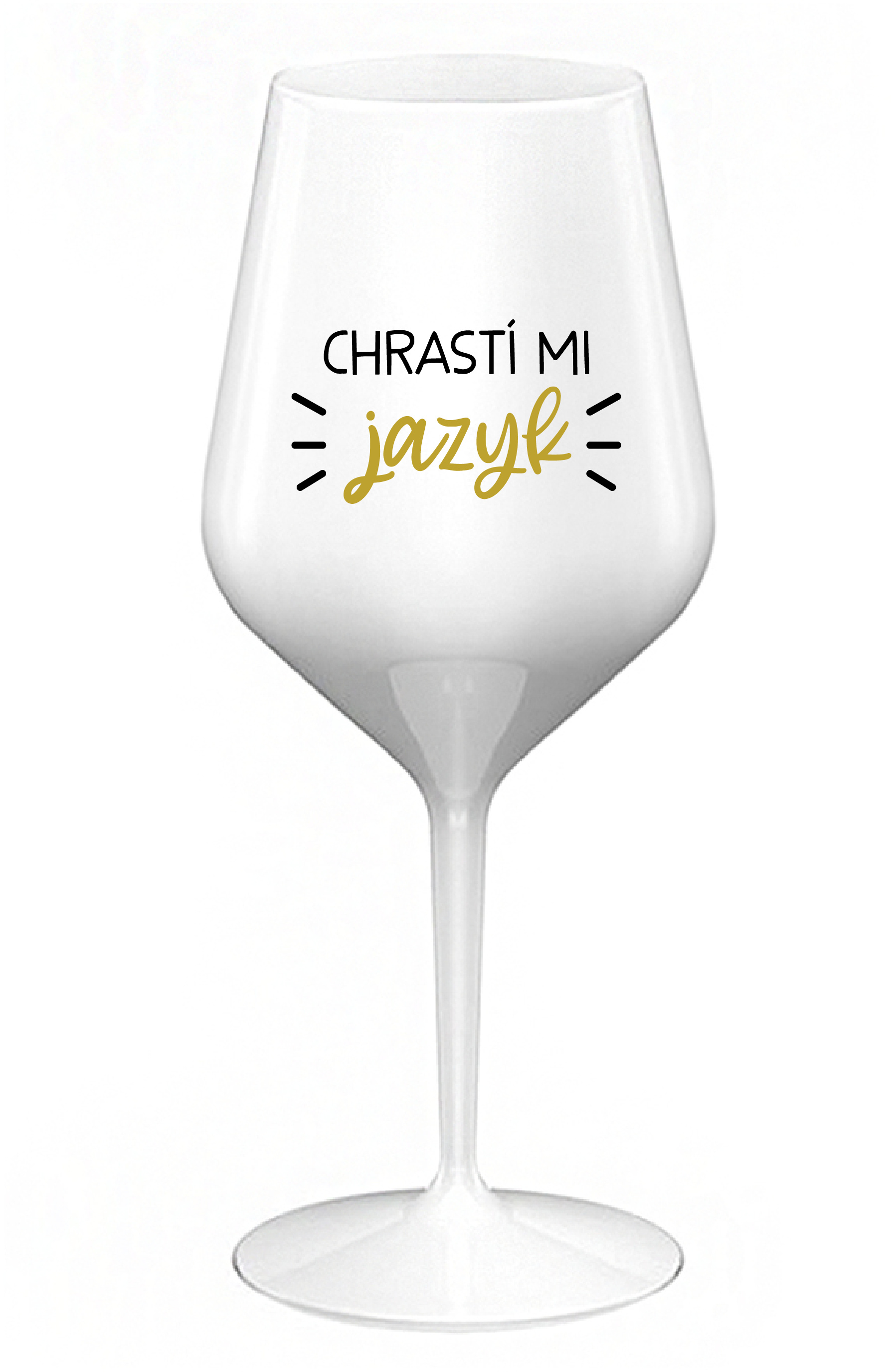 Popis CHRASTÍ MI JAZYK - biely nerozbitný pohár na víno 470 ml