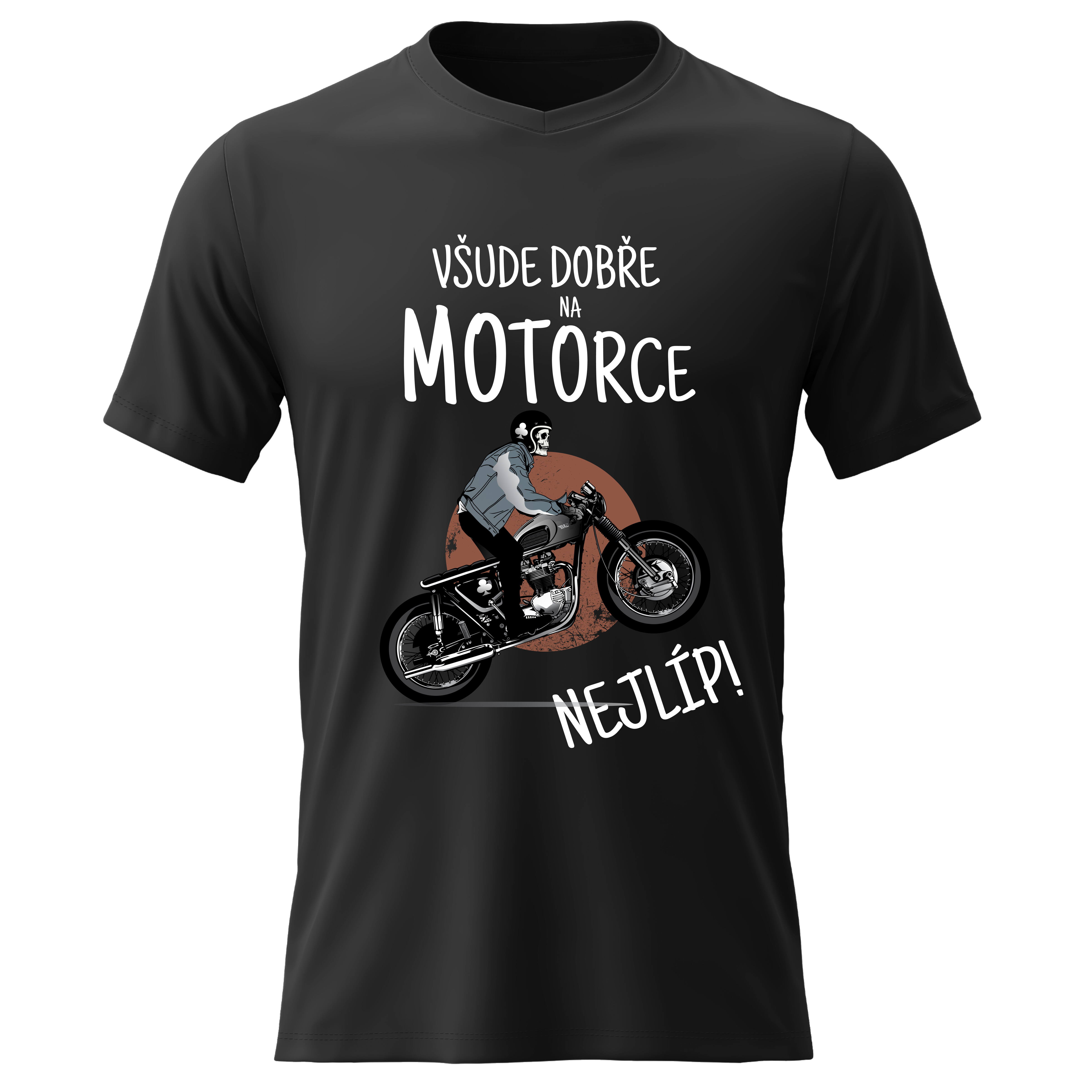 Originální potisk: „VŠUDE DOBŘE NA MOTORCE NEJLÍP!“