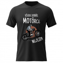 Akčné ponuky na váš e-mailVtipné tričko s potiskem VŠUDE DOBŘE NA MOTORCE NEJLÍP! – styl s nadhledem